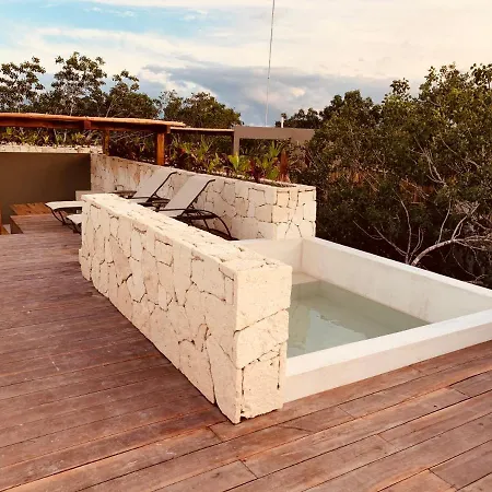 Con una piscina de inmersión y una piscina exterior, el Vida Boho Apart 16 With Special Fee To Access Hotel Bardo está situado en Tulum, a unos 25 minutos andando de la Casa de la Cultura de Tulum. Uno de los aspectos más destacados de este apartamento de 65 m^2 es su terraza, desde la cual los huéspedes pueden contemplar las vistas al jardín.